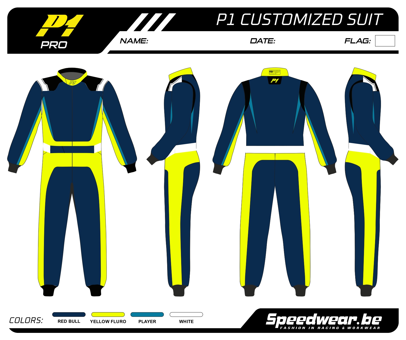 P1 FIA Race overall – Volledig op maat en in eigen design kan je een racepak laten maken in het design en kleur(en) dat jij graag wenst!