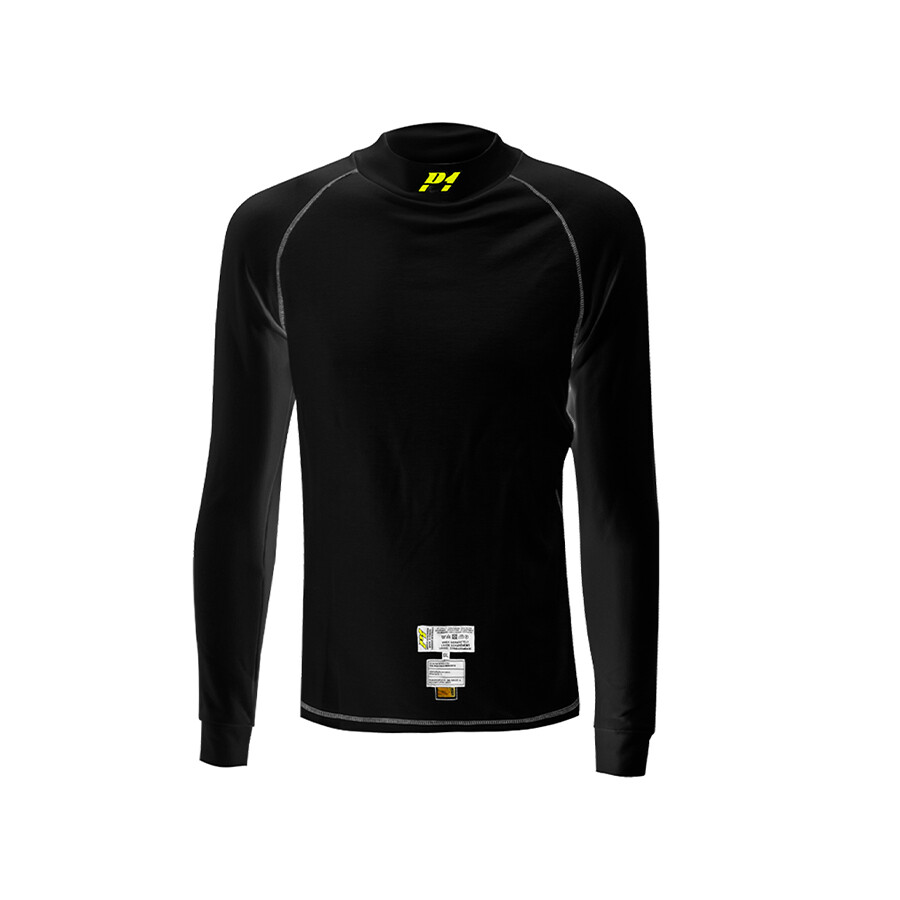 P1 Advanced Racewear ELITE COMFORT Top in zwart biedt de nieuwste FIA 8856-2018 homologatie, verbeterd ademend vermogen en ultiem comfort. Laat je sponsorlogo’s bedrukken op je brandvertragende onderkleding om je pak te imiteren en je sponsors zichtbaar te houden.