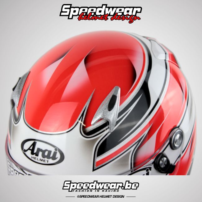 SpeedPaint Deal Ready-To-Ship SK6-S omvat helmspuiting tekening Speedpaintdeal Spielberg, inclusief Arai kartinghelm. Onmiddellijk beschikbaar!