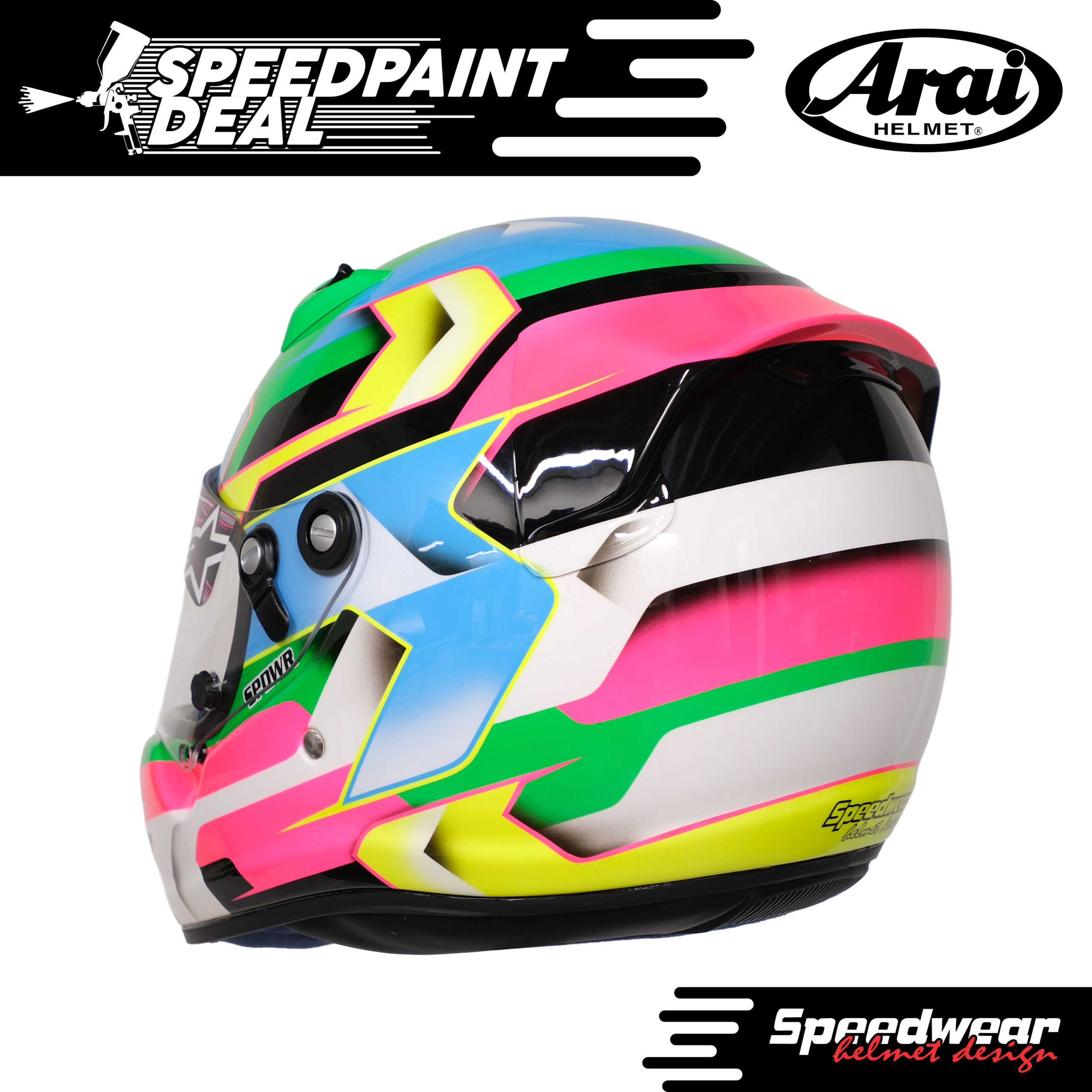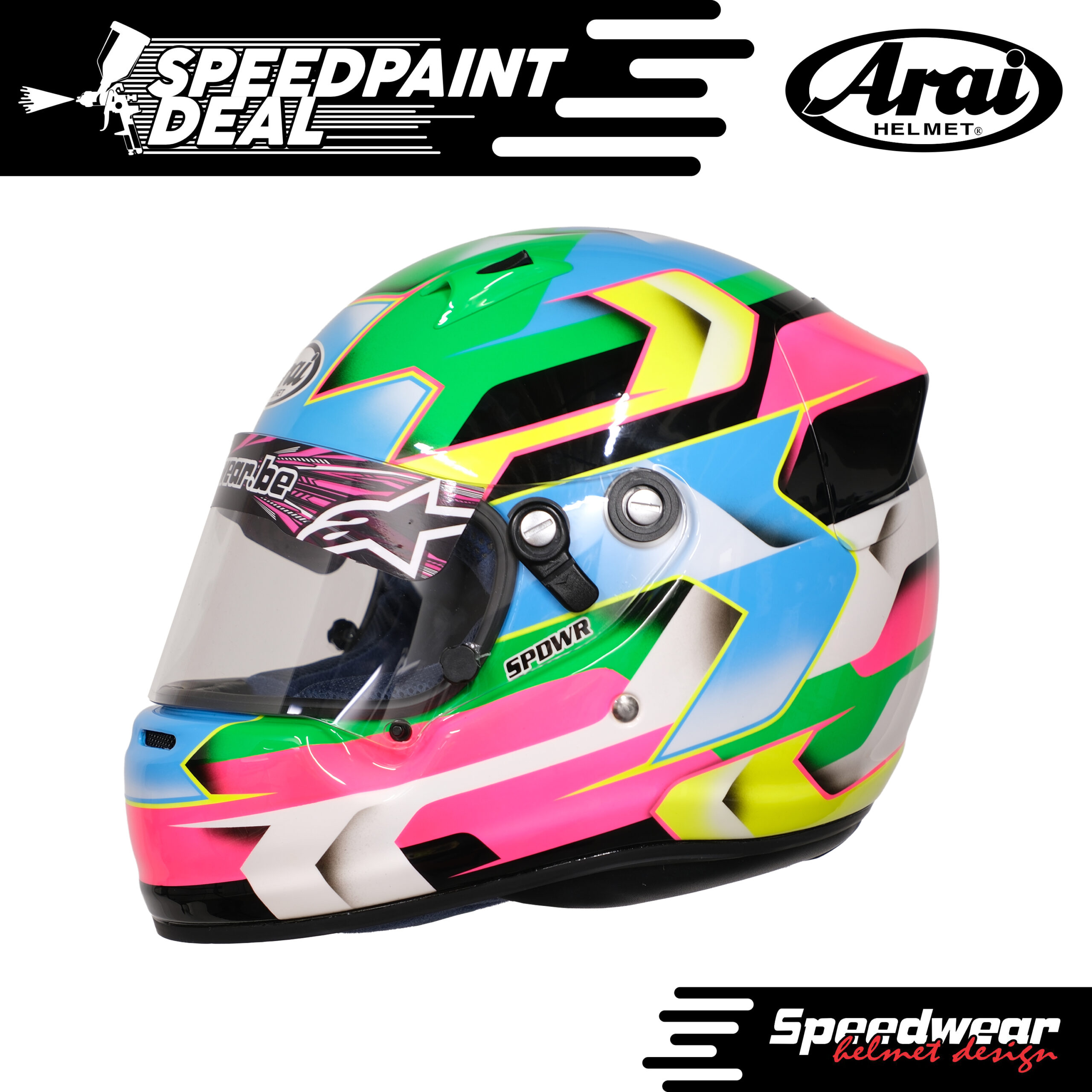 Wil je snel een karthelm met een unieke uitstraling? Dan is deze SpeedPaint Deal Ready-To-Ship CK6 – SMALL precies wat je nodig hebt. Deze volledig afgewerkte Arai kinder-karthelm is direct uit voorraad leverbaar en kan binnen de 24 uur bij jou thuis geleverd worden.